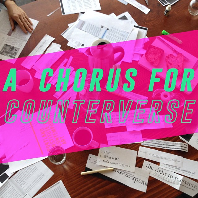 a chorus for counterverse is a score for five people, created with and performed by Izidora Leber, Leif J. Lee, Jason N. Le, Thomas John Gamble and ced reagan in July 2014 and presented by the Portland Institute for Contemporary Art within the context of the Resource Room Residency Program.