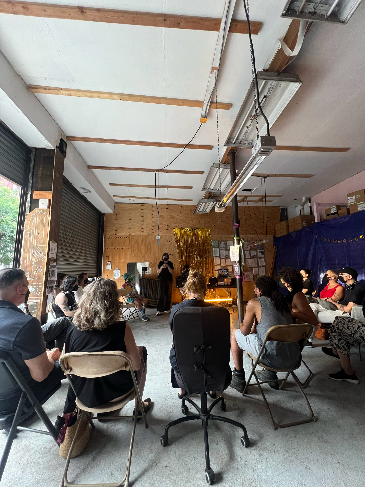 Outer Listening prioritizes access through NOTAFLOF pricing, wheelchair-accessible stage design and siting, mask requirements, clean air, seating options and an open format encouraging audiences to move freely in and out of the performance space. Outer Listening is entirely DIY, operating like a collective artist studio, and will continue expanding and morphing into 2026 and beyond.